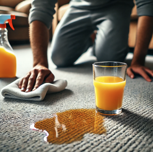 - Skvrny od mrkvové šťávy se omývají mýdlovým roztokem a ošetřují alkoholem, poté se posypou jedlou sodou. Když soda uschne, odstraní se pomocí vysavače.